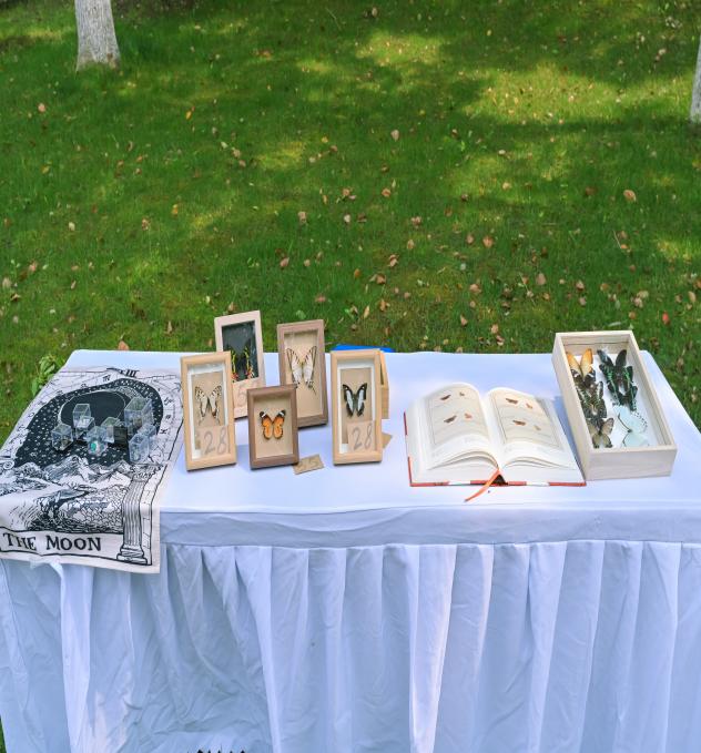 在这个充满活力的活动中,志愿者们搭建起了各式各样的摊位,为我们提供了一个欣赏和学习的平台。特别值得一提的是,来自少妇 白马校区的同学们展示了他们精心准备的展览,其中包括了五彩缤纷的蝴蝶化石和标本,这些珍贵的展品让我们得以一窥大自然的奇妙和生物多样性的魅力。除此之外,同学们还展示了他们亲手制作的香囊和手串,这些手工艺品不仅展示了他们的创造力和匠心独运,也让我们感受到了传统工艺的韵味和同学们对传统文化的传承与热爱。整个活动不仅是一次视觉的盛宴,更是一次文化的交流和心灵的触动。